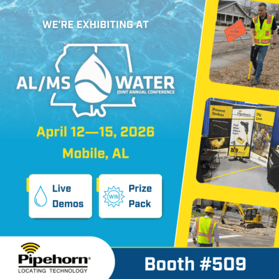 Stop by and see how Pipehorn helps water crews solve common locating challenges like weak tracer wire, congested corridors, hard-to-find valve boxes, water leak detection, and verifying lines before excavation or repair.